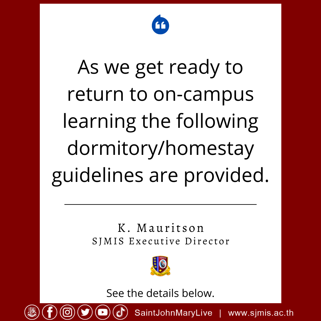 ในขณะที่ทางโรงเรียนมุ่งมั่นทำงานเพื่อเตรียมพร้อมที่จะกลับไปเปิดทำการเรียนการสอนในชั้นเรียน โรงเรียนจึงได้จัดเตรียมแนวทางปฏิบัติเกี่ยวกับหอพัก/โฮมสเตย์ ดังต่อไปนี้: